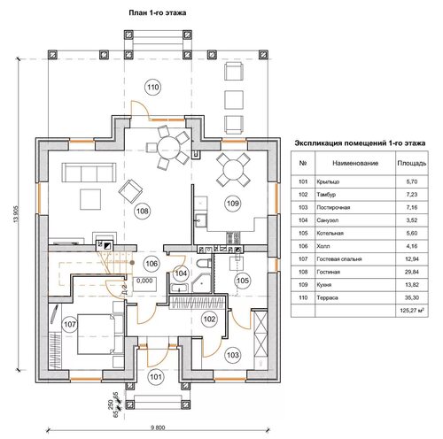 1. Планировка двухэтажного дома с террасой