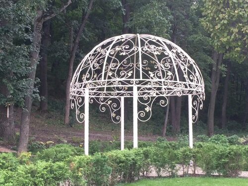 Кованая ротонда обладает уникальным и изысканным дизайном, который придает саду роскошный вид. Кованые элементы, выполненные с мастерством, создают атмосферу элегантности и стиля.