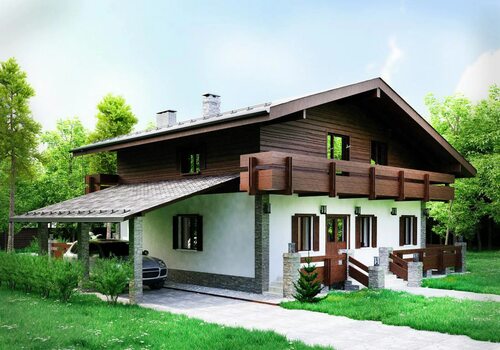 Этот проект предлагает объединить в одном доме традиционные элементы шале и современные технологии. Внутри дома располагается камин, создающий атмосферу уюта и тепла. На террасе можно отдыхать и наслаждаться свежим воздухом в любое время года.
