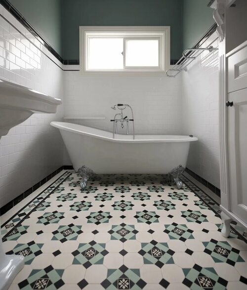 Метлахская плитка предлагает широкие возможности для креативного дизайна. Вы можете сочетать разные цвета и узоры, создавая уникальные композиции, которые подчеркнут стиль вашего санузла и сделают его по-настоящему уютным и привлекательным.