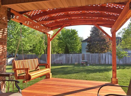 Пергола беседка с качелями имеет ряд преимуществ, которые делают ее популярным выбором для отдыха на даче: