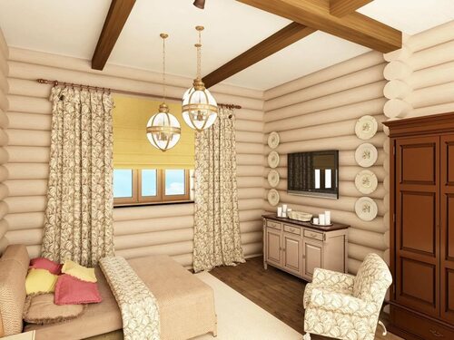 Гостиная в деревянном доме из бревна — это место, где собирается вся семья. Здесь можно создать уютную зону отдыха с мягкими диванами и креслами, оформленными в стиле, соответствующем деревянной атмосфере. В гостиной можно разместить камин, который станет центральным элементом интерьера и создаст атмосферу тепла и уюта.