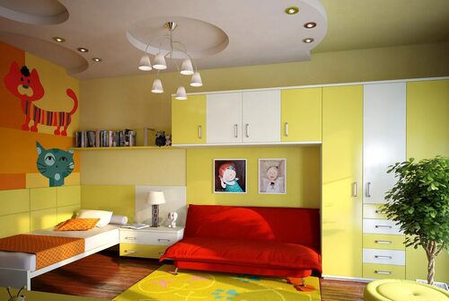 2. Желтые акценты: Если вы не хотите окрашивать все стены в желтый цвет, то можно использовать желтые акценты в декоре комнаты. Например, подушки, покрывала, шторы или ковры в желтом цвете добавят яркости и игривости в интерьер.