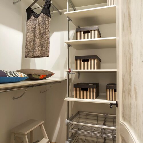 Первым шагом в обустройстве маленькой гардеробной в кладовке является организация пространства. Определите, сколько места вы можете выделить под гардеробную и создайте план расположения полок, вешалок и других элементов хранения. Помните о максимальной использовании вертикального пространства, например, установите высокие полки или штангу для вешалок под потолком.