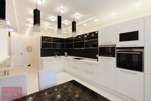 Если вы предпочитаете более строгий и минималистичный дизайн, то можно создать монохромный интерьер, используя белые и черные оттенки. В этом случае все поверхности будут белыми, включая стены, потолок и мебель, а черная техника станет ярким акцентом. Такой стиль выглядит очень современно и элегантно.