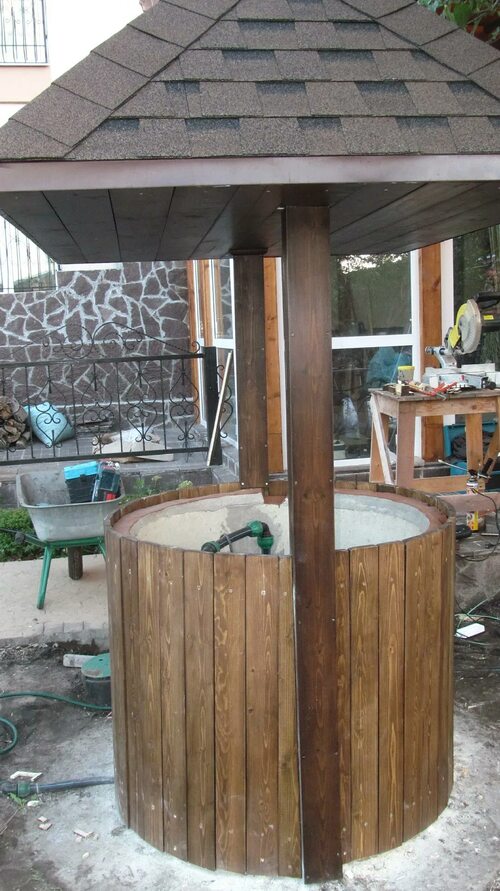 Если вы предпочитаете более природный и теплый вид, то деревянная обшивка станет отличным выбором. Дерево добавит колодцу натуральность и уют. Вы можете использовать разные породы дерева, например, сосну или дуб, в зависимости от ваших предпочтений и стиля вашего участка. Помните, что для деревянной обшивки необходимо использовать специальные материалы, которые защитят дерево от гниения и влаги.
