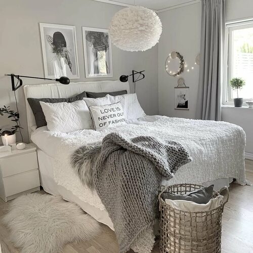 При выборе мебели для спальни в серых тонах, можно остановиться на серых или белых оттенках. Комбинирование разных оттенков серого может создать интересный и гармоничный образ. Также важно подобрать соответствующий текстиль - постельное белье, шторы, покрывала, подушки и т.д. Возможно сочетание серых оттенков с яркими акцентами, чтобы добавить свежести и оживить интерьер.