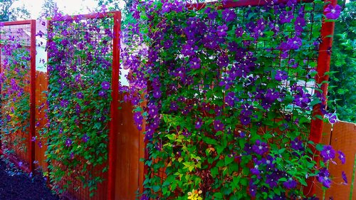 После посадки клематисов на заборе необходимо регулярно поливать растения и подкармливать их удобрениями. Важно также обеспечить опору для лоз клематиса, чтобы они могли подняться по забору и создать красивый зеленый экран.