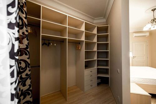 Для вдохновения и выбора подходящего дизайна гардеробной в кладовке, предлагаю вам рассмотреть некоторые реальные фотографии: