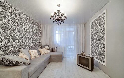 Комбинированные светлые обои являются отличным выбором для зала по ряду причин:
