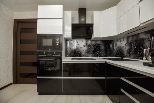 Сочетание черного и белого цветов в интерьере кухни хайтек создает эффектный контраст и придает ему стильность. Используйте глянцевые поверхности, стеклянные фасады и металлические акценты для создания современного и элегантного вида.