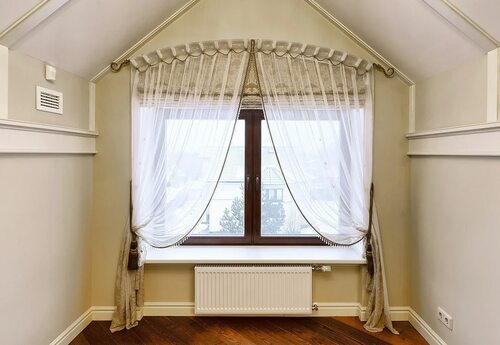 Классические карнизы для арочных окон представляют собой изящные металлические конструкции, которые подчеркивают красоту арки окна. Они могут быть выполнены из различных материалов, таких как латунь, бронза или нержавеющая сталь. Классические карнизы добавляют роскоши и элегантности в интерьер и идеально подходят для помещений в стиле ампир, барокко или классицизм.