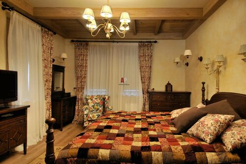 Стиль Кантри отличается своей непринужденностью и натуральностью. В интерьере спальни в стиле Кантри преобладают такие характеристики: