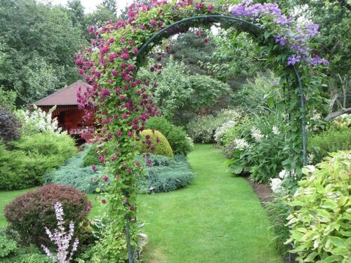Для вдохновения мы собрали несколько фотографий арок с клематисами. Посмотрите на эти изящные конструкции и представьте, как хорошо они будут смотреться в вашем саду.