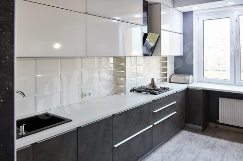 Преимущества бело серого матового гарнитура