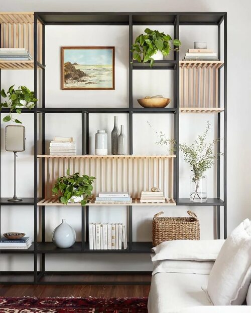 - Декоративный элемент: открытые стеллажи могут стать ярким акцентом в интерьере. Вы можете использовать их для экспонирования книг, предметов искусства, коллекций или даже растений. Это поможет добавить индивидуальности и характера в ваш дом.
