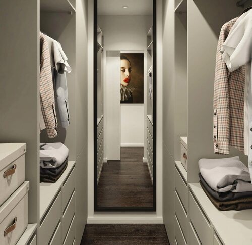 Зеркала играют важную роль в создании ощущения простора в маленькой гардеробной. Установите зеркала на стены, двери или даже потолок, чтобы отражать свет и создавать визуальное впечатление большего пространства.