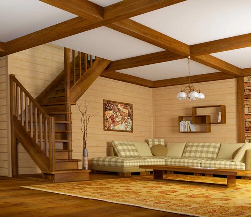 Фото 5 - Потолок с имитацией камня в гостиной на даче