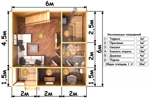 Проект 6: Баня с просторной площадкой для отдыха