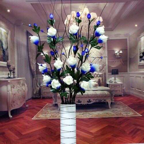 В спальне искусственные цветы могут добавить романтического настроения. Разместите нежные и пастельные цветы на прикроватной тумбочке или на полке над кроватью.
