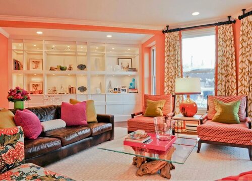 Персиковый цвет также прекрасно сочетается с контрастными оттенками, такими как темно-синий, глубокий фиолетовый или насыщенный зеленый. Это создает динамичный и живой интерьер, который привлекает внимание. Вы можете использовать персиковые стены в сочетании с контрастными мебелью или аксессуарами, чтобы создать эффектный фокусный центр в комнате.