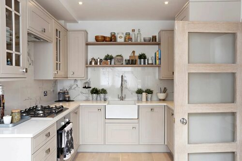 Не забывайте использовать вертикальное пространство в маленькой светлой кухне. Разместите высокие шкафы, полки или встроенные стеллажи, чтобы максимально использовать пространство от пола до потолка. Это поможет вам увеличить объем хранения и освободить поверхность на полу.