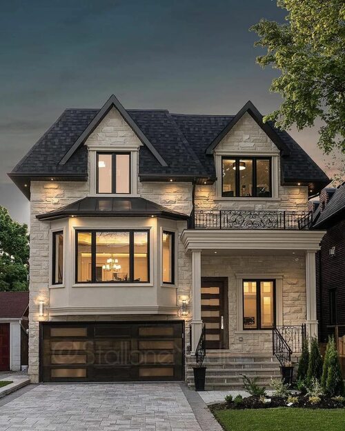 Классический стиль фасадов загородных домов всегда остается в тренде. Он характеризуется симметричной композицией, порядком и гармонией. Фасады в этом стиле обычно имеют колонны, арки, лепнину и другие элементы, которые придают им элегантность и роскошь. Использование натуральных материалов, таких как камень или дерево, добавляет шарма и природности.