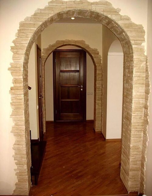 Если вы хотите придать арке особую атмосферу вечером, то можно добавить подсветку. Декоративный камень с встроенными светильниками или свечами создаст романтическое освещение и добавит арке дополнительную привлекательность. Фотография 5.