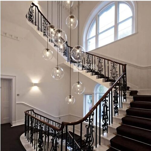 Если у вас длинная лестница с несколькими пролетами, можно рассмотреть вариант с размещением подвесных светильников вдоль лестницы. Это создаст равномерное освещение и добавит современности и функциональности.