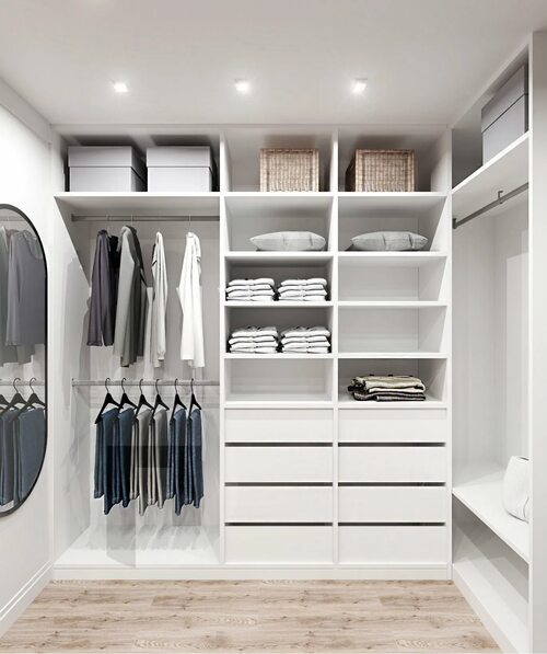 - Организуйте внутреннее пространство гардероба с помощью модульных систем, которые позволяют настроить его под ваши индивидуальные потребности.