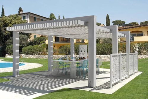 3. Пергола с автоматическим управлением. Добавление технологических возможностей, таких как автоматическое открывание и закрывание крыши, подсветка и система полива, делает перголу еще более удобной и функциональной.
