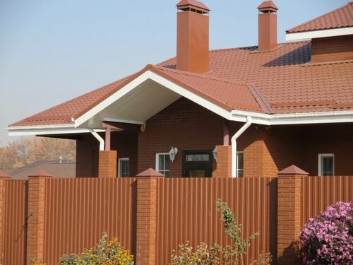 Монохромное сочетание цветов - это классический выбор, который всегда будет выглядеть стильно и элегантно. Например, если ваша крыша имеет коричневый цвет, то забор можно сделать в том же оттенке или нюансе. Это придаст вашему дому изысканность и шарм.