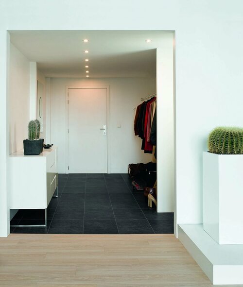 Прихожая часто подвержена воздействию влаги, особенно в сезон дождей или зимой, когда на обуви остаются следы снега и грязи. Плитка обладает отличной влагостойкостью, что позволяет легко удалять загрязнения и поддерживать чистоту в помещении.