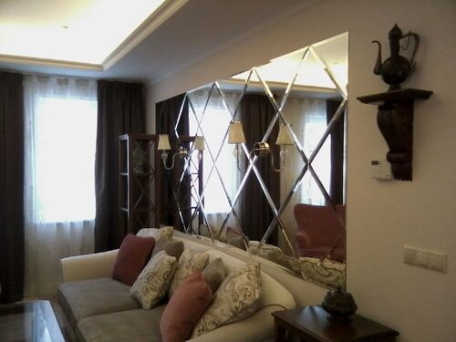 Если ваш интерьер выполнен в классическом стиле, зеркальное панно над диваном станет великолепным дополнением. Выберите панно с изящной рамой и установите его над диваном. Это создаст ощущение роскоши и добавит гламура в вашу гостиную. Ниже приведена фотография, иллюстрирующая эту идею.