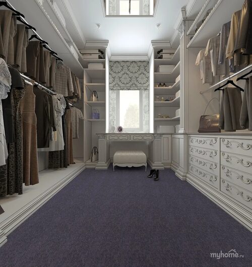 Окно в гардеробной позволяет максимально использовать естественное освещение. Благодаря этому, вы сможете лучше видеть свою одежду и аксессуары, а также они не будут выгорать под воздействием солнечных лучей.
