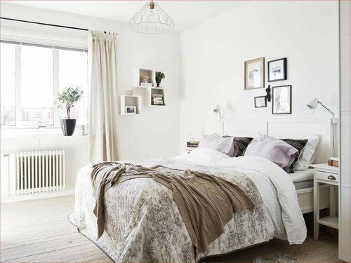 В скандинавском интерьере спальни используются светлые оттенки, такие как белый, бежевый и серый. Они создают ощущение простора и света. Вы можете выбрать один основной цвет для стен и добавить акценты других оттенков с помощью декоративных элементов, покрывал и подушек.