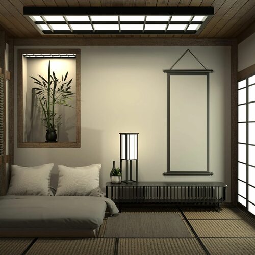 Японцы очень внимательно относятся к освещению, и в маленькой комнате это особенно важно. Используйте мягкое и естественное освещение, предпочтительно от естественного света. Установите шторы из тонкого материала, которые позволят проходить свету, но при этом обеспечат некоторую приватность.