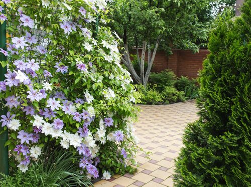 Размещение клематисов в миксбордере