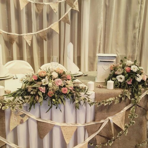 Ниже представлены фотографии для вдохновения. Они помогут вам представить, как может выглядеть украшение зала на свадьбу в стиле рустик.