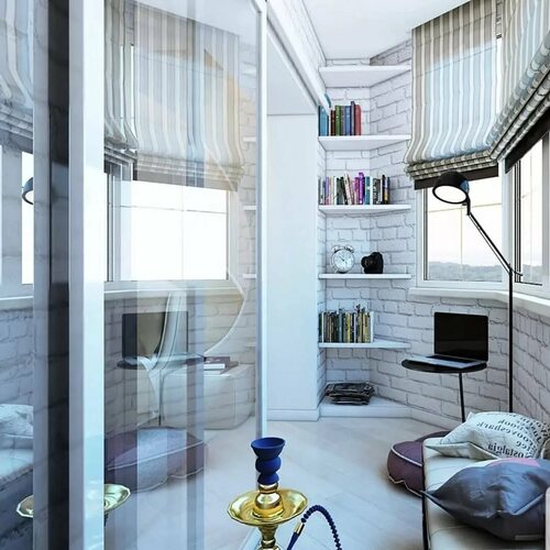 Скандинавский стиль отлично подходит для создания уютной и минималистичной балконной комнаты. Основные элементы этого стиля – светлые тона, натуральные материалы и функциональная мебель. Добавьте немного зелени и текстиля, чтобы создать приятную атмосферу.