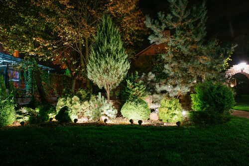 Перед тем, как приступить к установке подсветки, необходимо определиться с видом освещения. Существует несколько вариантов подсветки деревьев: