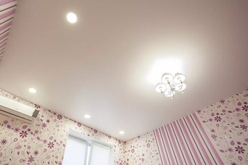 2. Сатиновый потолок с глянцевой поверхностью