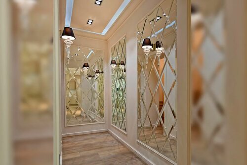 Для тех, кто любит необычные и креативные решения, зеркальное панно-мозаика станет отличным выбором. Вы можете создать уникальный дизайн, комбинируя зеркала разных форм и размеров. Такое панно будет привлекать взгляды и станет настоящим художественным произведением в вашей прихожей.