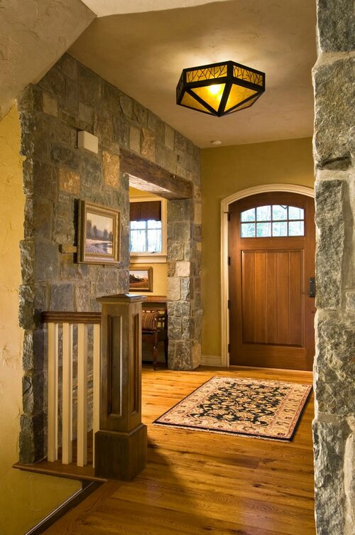 Еще одним вариантом использования дикого камня в интерьерах прихожих является его укладка на пол. Это не только функциональное решение, но и стильный элемент дизайна. Каменный пол прекрасно сочетается с различными стилями интерьера, от классики до современности.