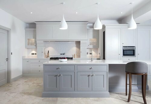 Серый цвет является идеальным выбором для кухни в неоклассическом стиле. Он придает интерьеру изысканность и элегантность. Вы можете выбрать оттенок серого, который вам нравится: от светлого серебристого до темного антрацита. Комбинируйте серый с другими нейтральными оттенками, такими как белый или бежевый, чтобы создать гармоничный интерьер.