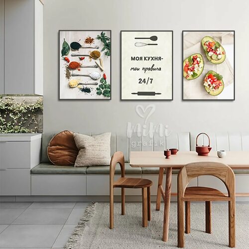 Одним из самых популярных вариантов является центральное расположение постера или группы постеров. Это создает фокусное внимание и придает вашей кухне особый шарм.