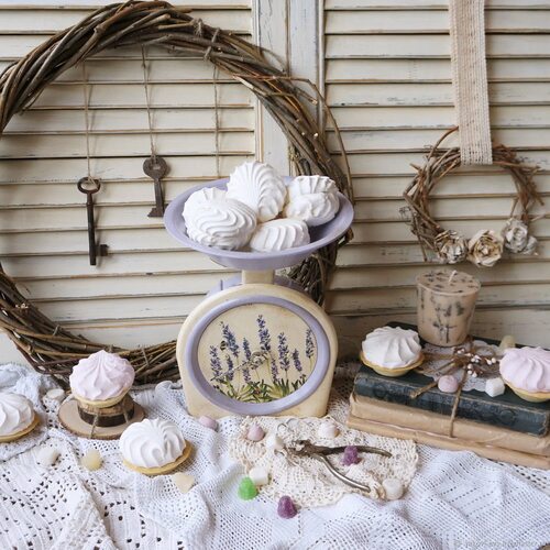Особое внимание в стиле Прованс уделяется декоративным элементам. Расставьте на кухне керамические посуду с растительным орнаментом, фарфоровые фигурки и вазы с полевыми цветами. Также можно использовать старинные рамы для фотографий или зеркала с изящными рамками.