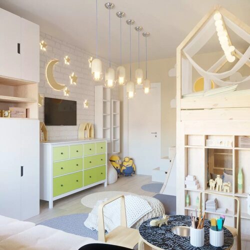 Декоративное освещение может добавить в детскую комнату уют и индивидуальность. Различные световые элементы, такие как гирлянды, ночники или светильники с необычным дизайном, могут создать волшебную атмосферу и стать интересным акцентом в интерьере.