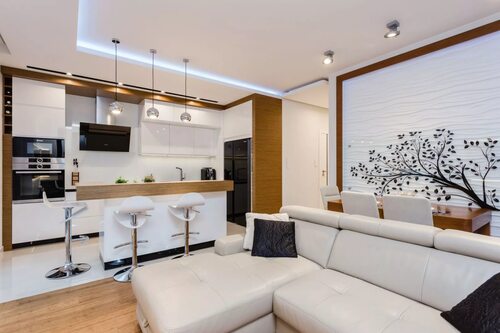Современные технологии становятся все более важными в нашей повседневной жизни, и кухня-гостиная не является исключением. Умные холодильники, плиты и светильники помогут вам сделать вашу кухню-гостиную более современной и функциональной. Используйте новейшие разработки, чтобы упростить вашу жизнь и сделать интерьер еще более привлекательным.
