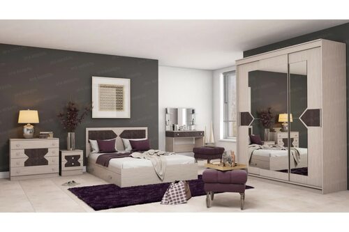 Спальный гарнитур "Николь" отличается своим элегантным дизайном и функциональностью. Он представляет собой комплект из кровати, прикроватных тумбочек, комода и зеркала, что позволяет полностью обустроить спальню без необходимости покупать каждый элемент отдельно.